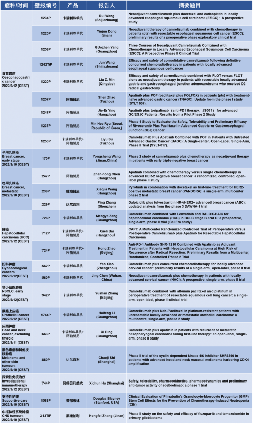 作为从事创新和高品质药物研发的国际化制药企业,利来国际医药的研究成果在2022 ESMO大会上还收获了25项壁报形式的报告。其中,食管胃癌领域共有9项研究入选,研究的方案主要是卡瑞利珠单抗或卡瑞利珠单抗联合阿帕替尼,通过与化疗或放化疗联用,新辅助治疗食管鳞癌或胃癌。2022年9月12日(CEST),让我们齐聚ESMO大会,共同领略食管胃癌研究领域的学术盛宴。此外,利来国际医药达尔西利、吡咯替尼、阿得贝利单抗等创新药还有4项乳腺癌研究、3项肝癌研究及其他领域的9项研究都将会以壁报展出,让我们共同期待!