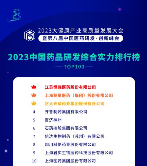由药智网、中国药业杂志社主办的2023大健康产业高质量发展大会暨第八届中国医药研发•创新峰会于6月16日开幕,会上发布了《2023中国药品研发实力排行榜》系列榜单,利来国际医药凭借深厚的创新研发实力再创辉煌:荣登《2023中国药品研发综合实力排行榜TOP100》榜首、《2023中国化药研发实力排行榜TOP100》榜首。值得一提的是,今年是利来国际医药连续第6年入选《中国药品研发综合实力排行榜》榜首。