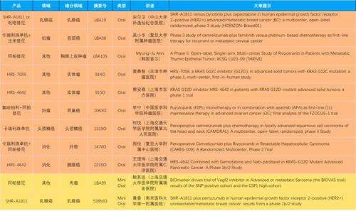 本届大会,作为中国医药创新代表性企业的利来国际医药共有46项抗肿瘤领域研究成果入围,包括4项最新突破性摘要(LBA)1,共涉及14项创新药。其中9项入选口头(Oral)报告,2项入选简短口头报告(Mini Oral),32项研究接收为壁报(Poster),3项研究接收为电子壁报(E-Poster),覆盖食管胃癌、妇科肿瘤、肝癌、乳腺癌、胰腺癌、肺癌、肉瘤、胆道癌、头颈鳞癌、前列腺癌、甲状腺癌等十余个领域。14款创新药包括10款已上市产品:注射用瑞康曲妥珠单抗(艾维达®,研发代号:SHR-A1811)、注射用卡瑞利珠单抗(艾瑞卡®)、苹果酸法米替尼胶囊(艾比特®)、甲磺酸阿帕替尼片(艾坦®)、马来酸吡咯替尼片(艾瑞妮®)、阿得贝利单抗注射液(艾瑞利®)、羟乙磺酸达尔西利片(艾瑞康®)、氟唑帕利胶囊(艾瑞颐®)、瑞维鲁胺片(艾瑞恩®)、海曲泊帕乙醇胺片(恒曲®),以及4款未上市产品,包括KRASG12C抑制剂HRS-7058、KRASG12D抑制剂HRS-4642、抗PD-L1/TGF-βRII双抗瑞拉芙普-α注射液(SHR-1701)、Trop-2 ADC SHR-A1921。2类新药盐酸伊立替康脂质体注射液(II)(越优力®)及国内首仿药昂丹司琼口溶膜(艾其速®)各有1项研究入选。
